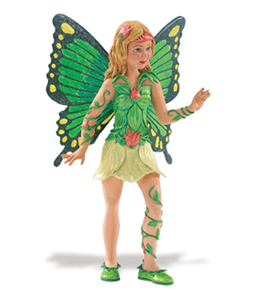 Iris is so pretty in yellow and green including her large wings and green shoes. Vines twine around one leg and arm and she has flowers in her blond hair and on her dress. Is she from the enchanted forest? Let her bring some enchantment to your playroom.