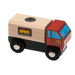 Part of the Brio line of wooden trains and vehicles this truck with a red cab has a removable magnetic load. Part of this line of toys includes a crane that can lift the cargo off of the truck. The crane is currently out of stock. Works with other sets such as Plan Toys. Hard to find individual pieces. This is a great item to add to your Brio set. Lots of play value.