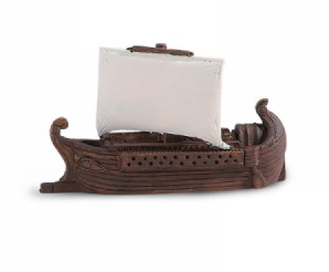 Romans were not known to be ship builders. The war ships were made of wood and had flat hulls often with a ram to disable other ships. They were powered by wind and man power having many rowers on each side. This Ship of Ancient Rome is hand painted and well detailed with a single large sail and a flat hull. Fun way to learn history.